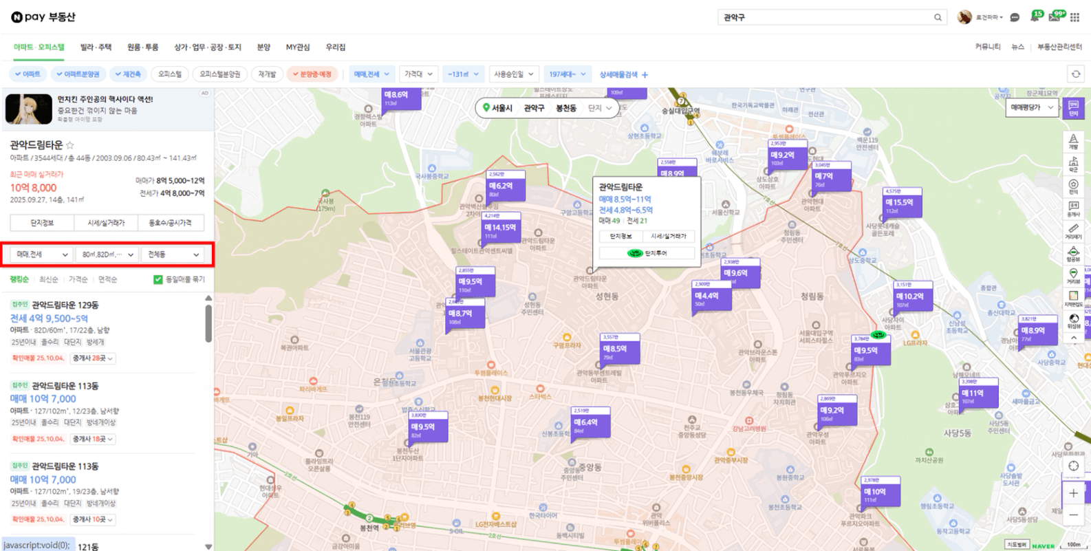 네이버 부동산에서 단지의 시세는 어떻게 보는지
