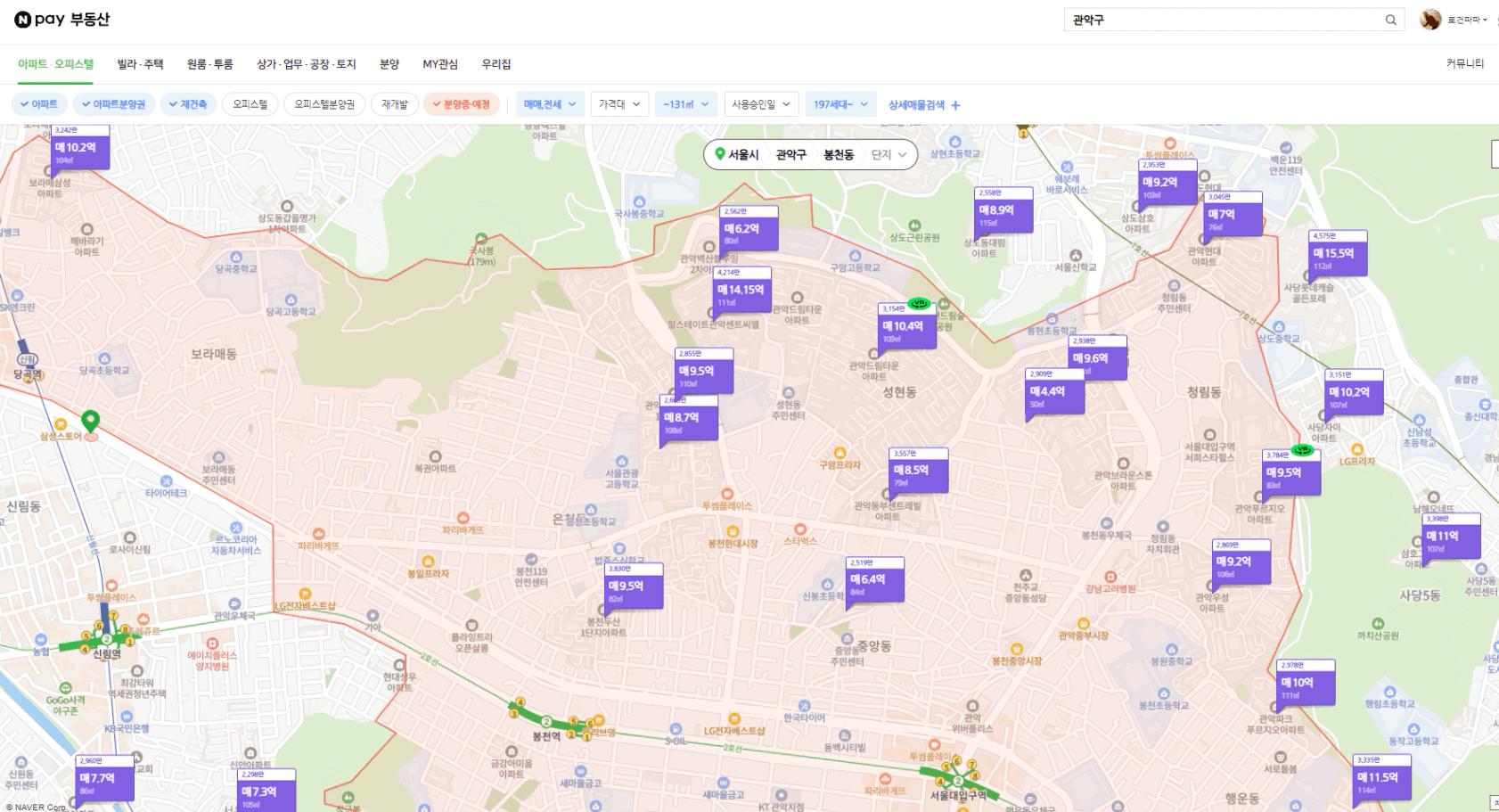 ‘지역’이나 ‘아파트 단지’ 명을 검색합니다.