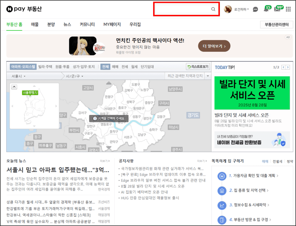 우선, PC나 노트북을 이용해 네이버 부동산에 들어갑니다.