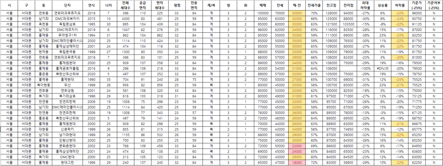 투자를 위한 전수조사라면 없는 매매가는 비워두며