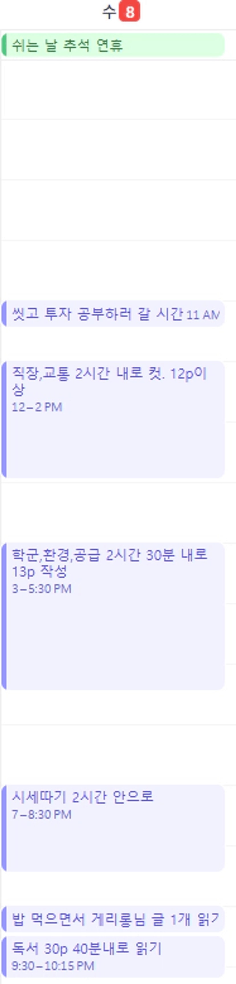 내일 임보 완성, 시세따기 완성, 게리롱님 칼럼 필사, 독서 30P