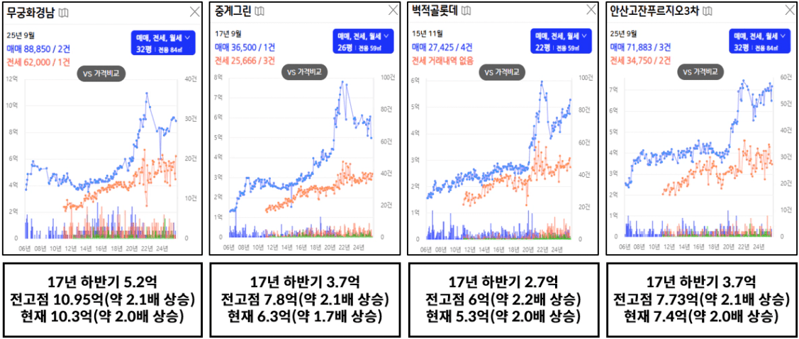 ③ 선호 지역 및 단지들의 가격이 보합 + 덜 오른 (오르지 않은) 단지들의 가격 급상승