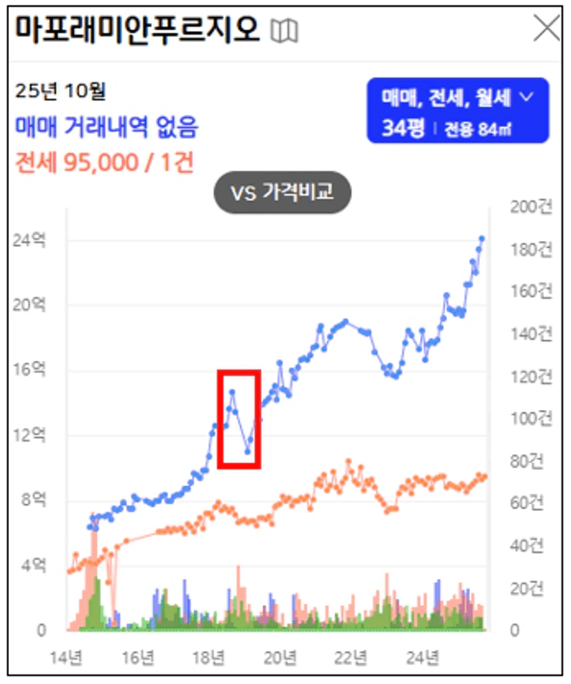 ② 선호 지역 및 단지들의 가격이 하락 + 덜 오른 (오르지 않은) 단지들의 가격 상승