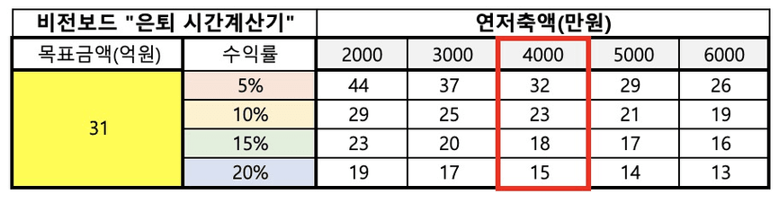 목표 금액 31억 (현재 나이 39세, 연저축액 4000만원)