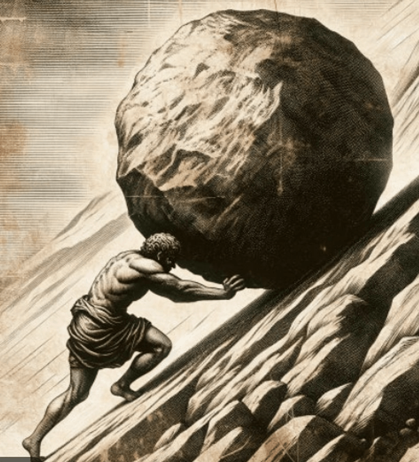 그리스 신화에서 나오는 시지프스의 형벌이 떠올랐다. 이 형벌의 핵심은 결코 끝이 없고, 아무리 노력해도 결실을 맺지 못하는 무의미한 반복이라는 것에 있다. 현대를 살아가면서 일상의 반복, 무의미한 노동, 끝없는 고통을 견디는 우리 현대인의 모습을 비유적으로 표현할 때 자주 인용된다고 한다. 알베르 카뮈의 책 시지프 신화에서는 이런 현실을 받아들이고, 무의미함 속에서도 의미를 찾으려는 의지를 보이는 존재가 바로 인간이라고 해석했다.