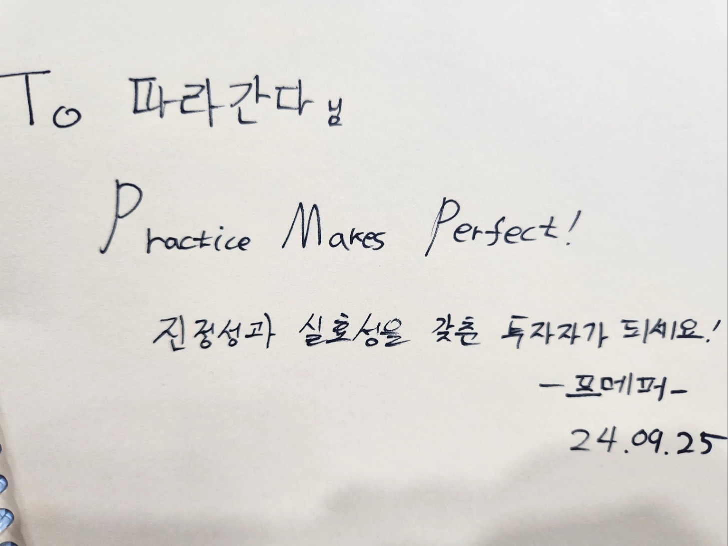 따라간다님 ㅋㅋ 재수강임에도 불구하고 이렇게 열정적으로 후기를 남겨주시고, BM한 장표까지 보여주시다니 감동입니다~! 이제는 선배투자자로서 후배분들도 잘 도와주면서 더 성장해나가길 응원할게요! 곧 월학에서 봬요!