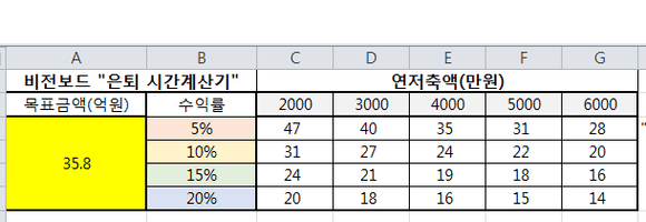 목표금액 : 35.8억(현재나이44세, 연저축액 4000만원)