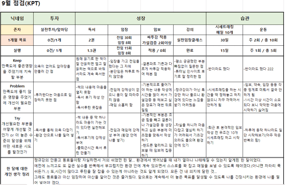 자실하며 조금 쉬어 갔던 9월을 복기하고 10월 계획을 세워보고자 합니다.