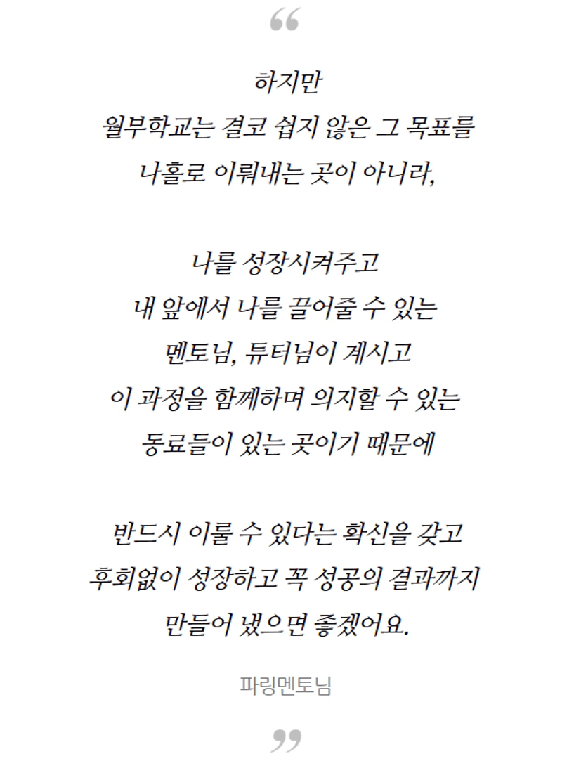 월부학교 학생들 생각이 났다는 말씀을 전해주셨어요.
