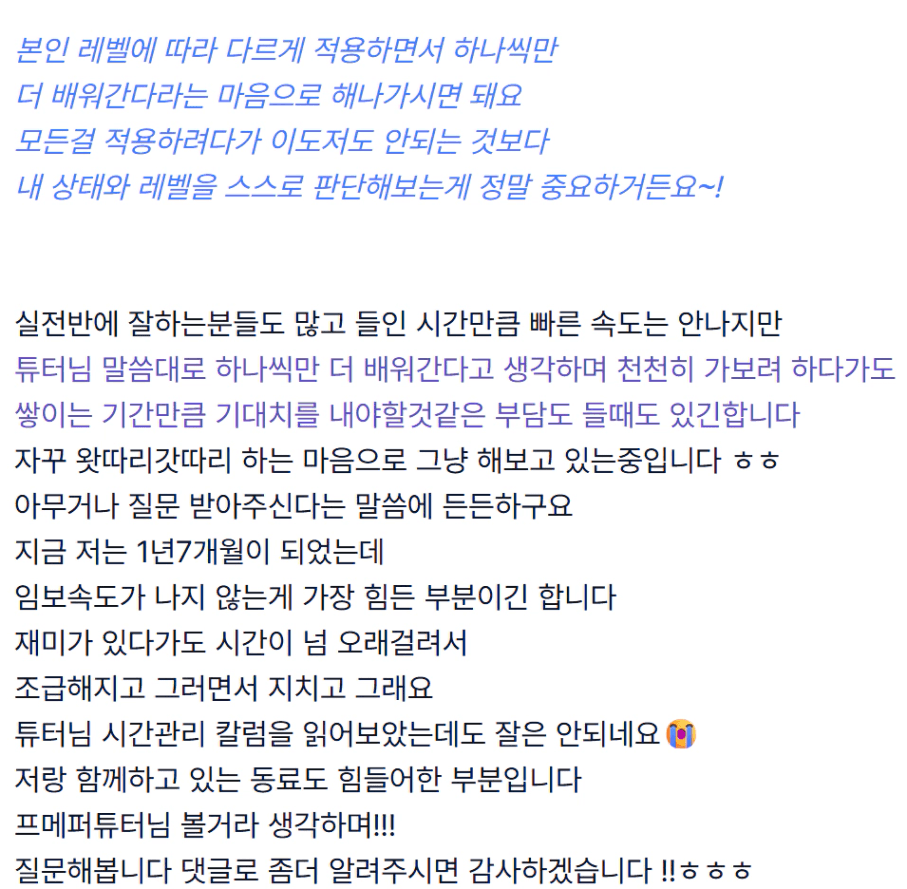 지난7월, 2번째 실전반때 쓴 프메퍼튜터님 후기에 남긴 질문인데요