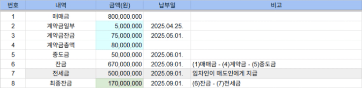 기본적으로 매매금에서 계약금을 뺀 금액이 잔금이 되는데,