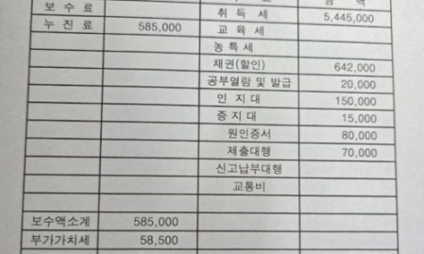 법무사님이 사전에 주신 견적서에서 가감이 있을 수 있습니다.