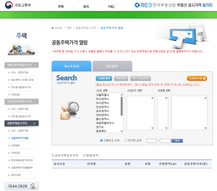 부동산 공시가격 알리미 > 공동주택 공시가격 > 공동주택가격 열람