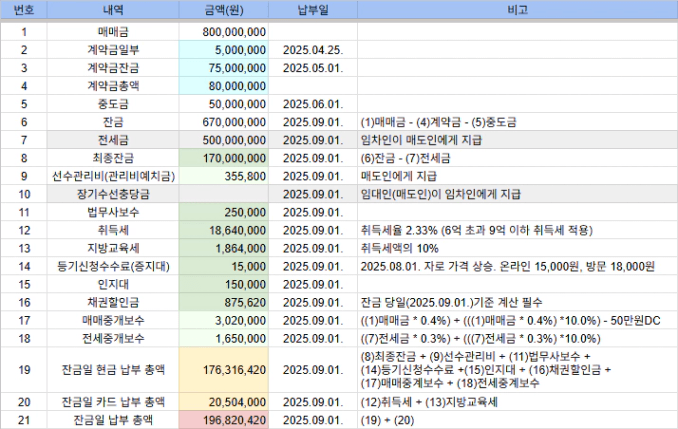 따라서 잔금 당일 아침에 이 금액을 직접 계산해보고