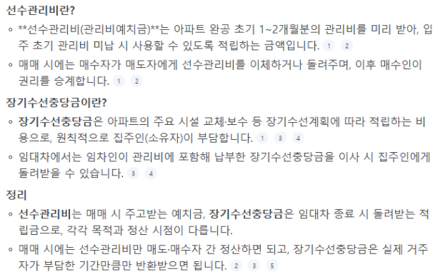 가장 많이 헷갈려 하시는 부분이 선수관리비와 장기수선충당금 입니다.