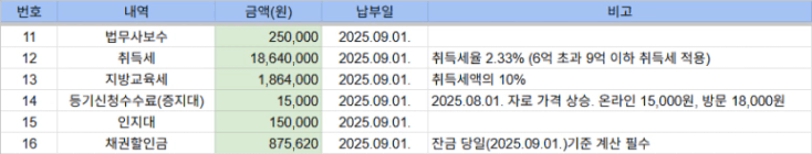 잔금일에는 잔금 말고도 신경써야 할 비용들이 있습니다.