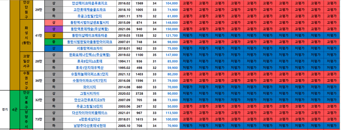 경기도 2급지부터는 서울의 4,5급지와