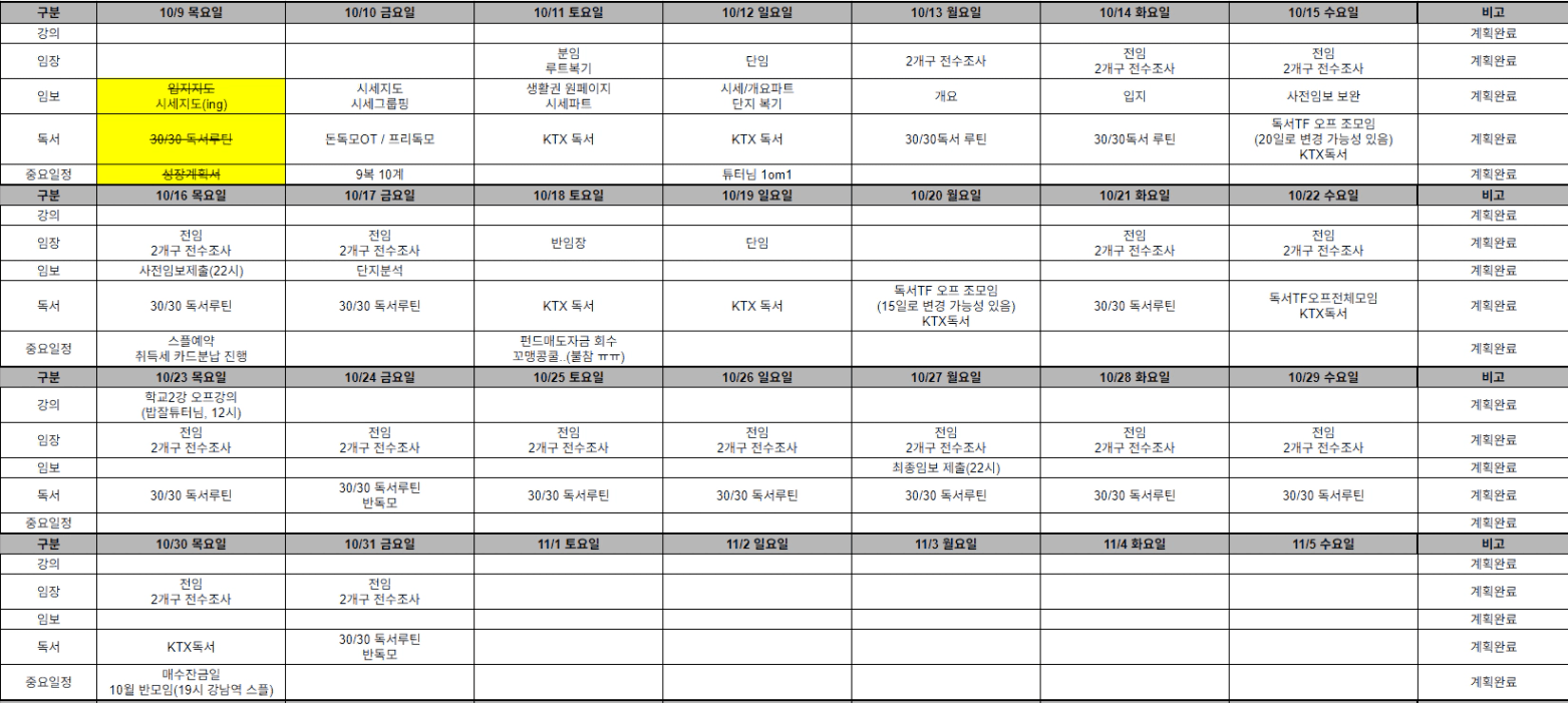 T(어떻게 개선, 새로운 시도를 할 것인지) : 1일 2개구 전수조사 + 전임을 통해 물건 상황 확인하여 5분위 시세표의 지속적인 업데이트 진행. (언제든 돈이 생기면 투자할 수 있는 준비된 투자자 되어보기)