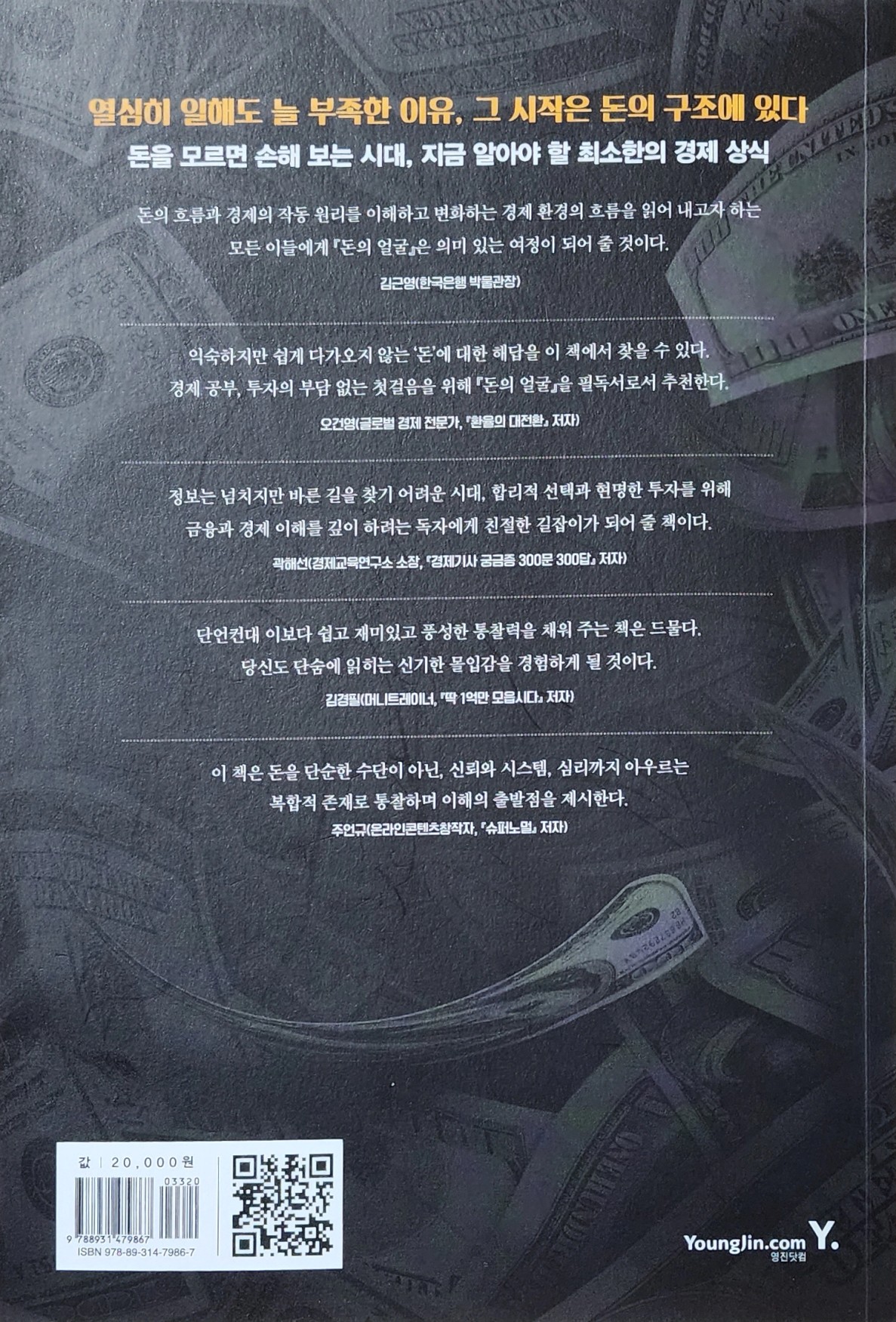 이 책은 돈을 단순한 수단이 아닌, 신뢰와 시스템, 심리까지 아우르는 복합적 존재로 통찰하며 이해의 출발점을 제시한다. - 주언규(온라인콘텐츠창작자)
