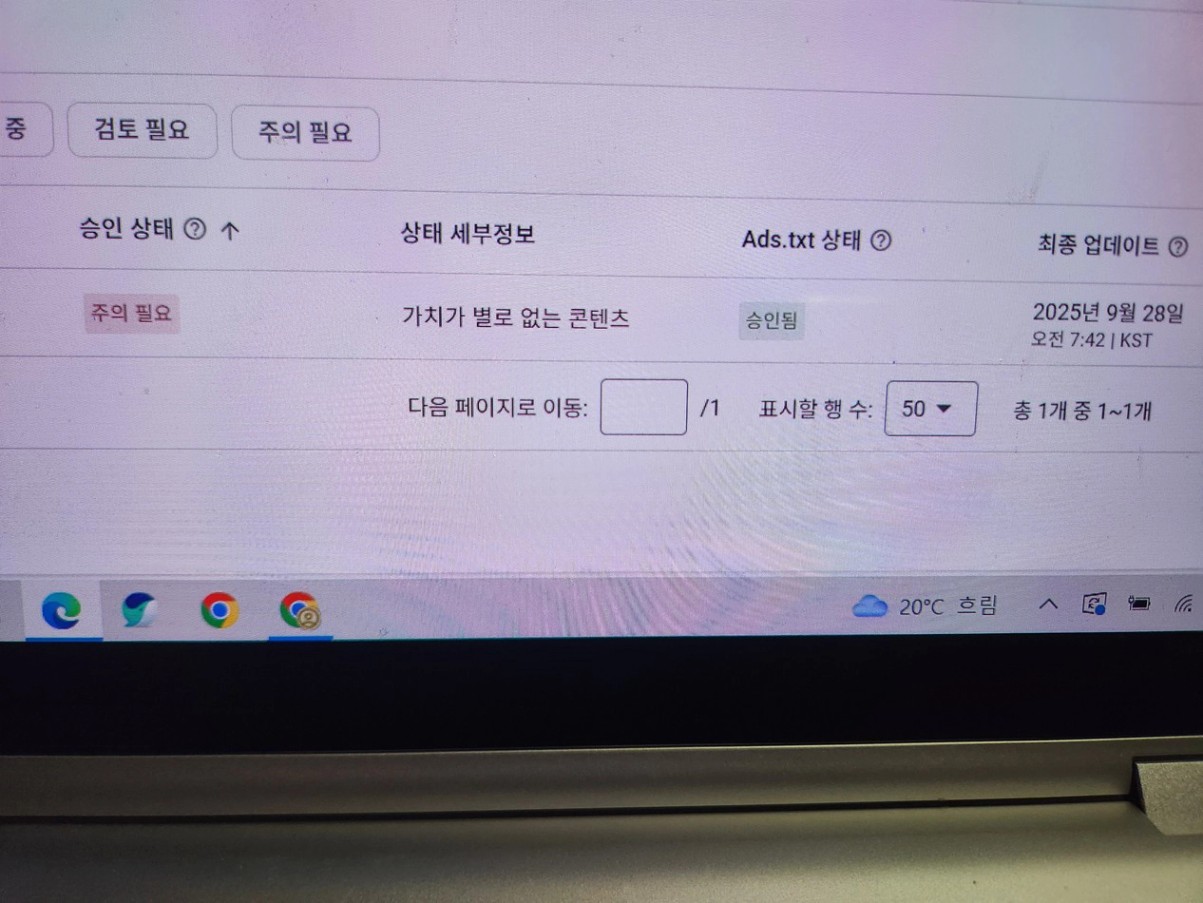 '가치가 별로 없는 콘텐츠'로 떴습니다.