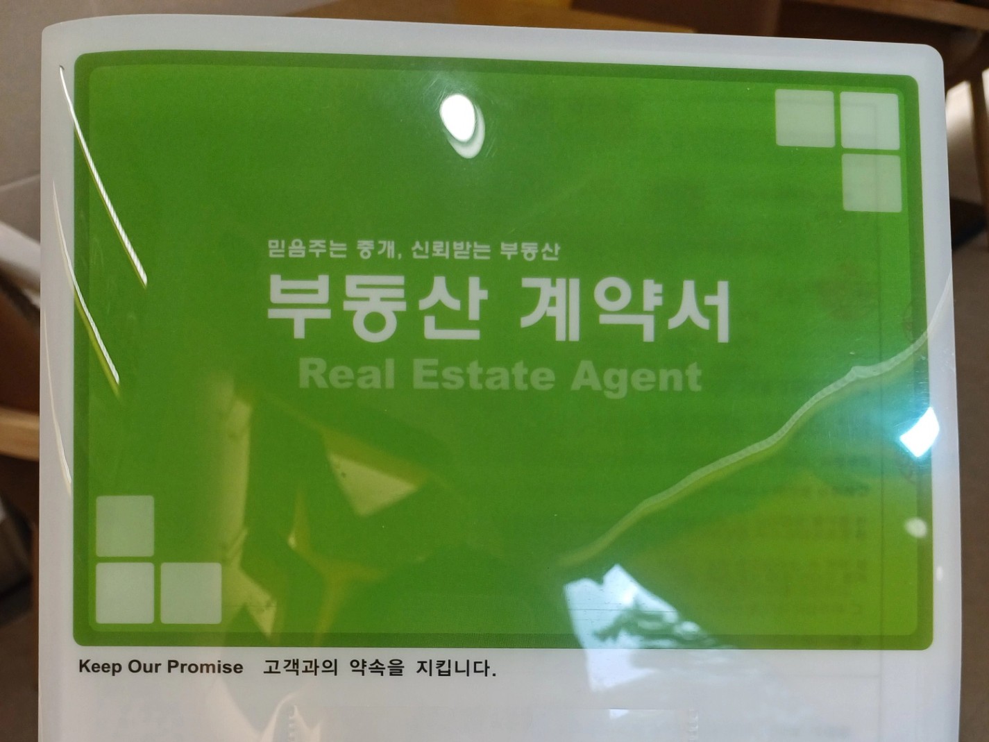나는 단지 내에서 가장 신뢰하는 부동산에 방문해서 테이블 앞에 앉았다.