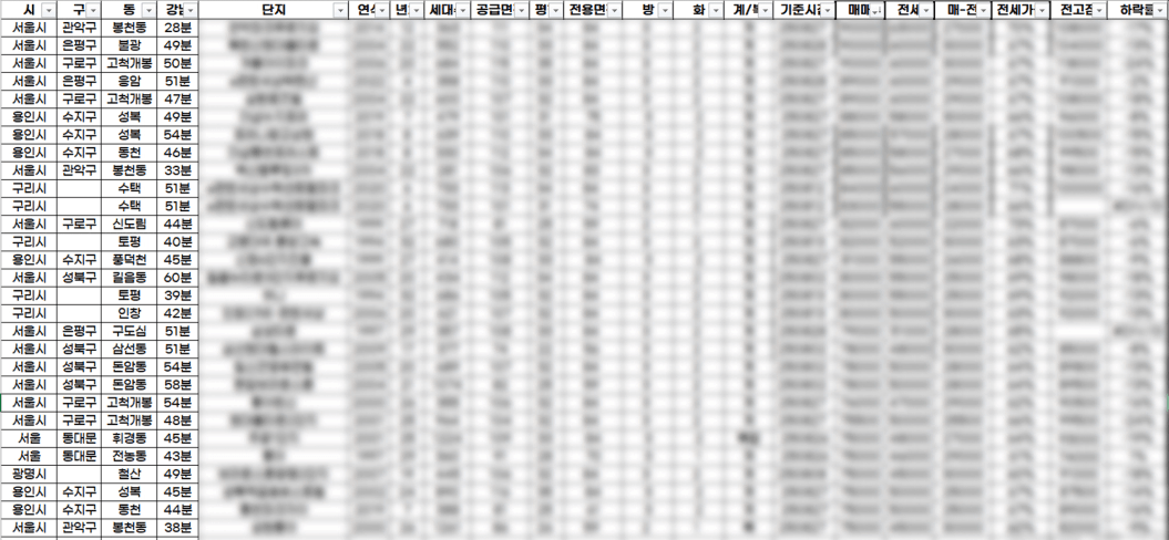 모든 단지의 시세를 보는 것이 물리적으로 어려울 것이라 판단했고, 매매가 9억 이하 단지의 시세를 조사했다.