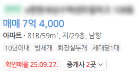 나는 이 물건을 2주 전에 봤었지만 당시에 동일 평형 전세 매물이 2개 있었고,