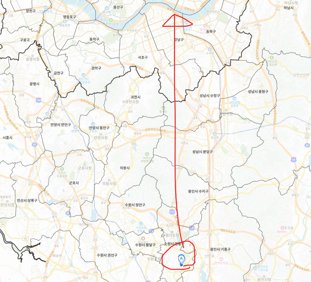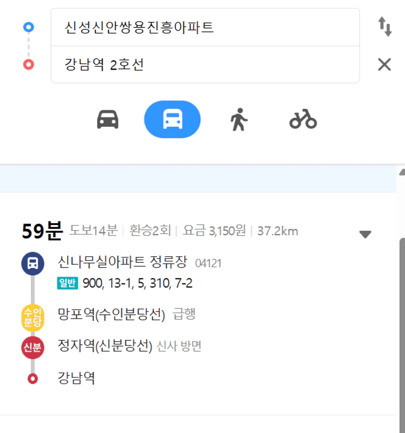 물론 이 아파트의 위치를 살펴보면 강남/한강과 꽤 멀리 자리해 있습니다. 물리적으로 거리가 상당합니다. 그러나 그럼에도 불구하고, 이 아파트는 전국에서 가장 많은 일자리가 모여있는 강남을 1시간에 갈 수 있습니다. 뿐만 아니라 근처에 삼성 중심의 일자리도 누릴 수 있는 가성비 좋은 곳입니다.