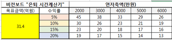 목표금액 31.4억 (현재 나이 36세, 연 저축금액 2,000만원)