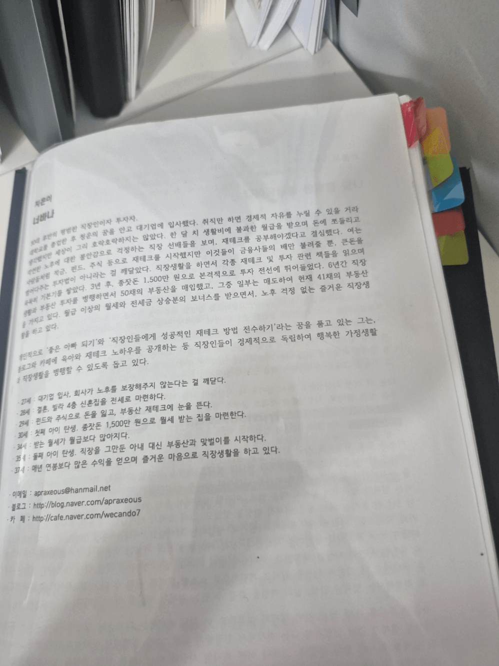 어떻게 부동산 투자를 통해 자산가가 되었는지 일대기를 기록하고 있으며, 적용할만한 점과 배울 만한 점들을 공유해주시고 있다.