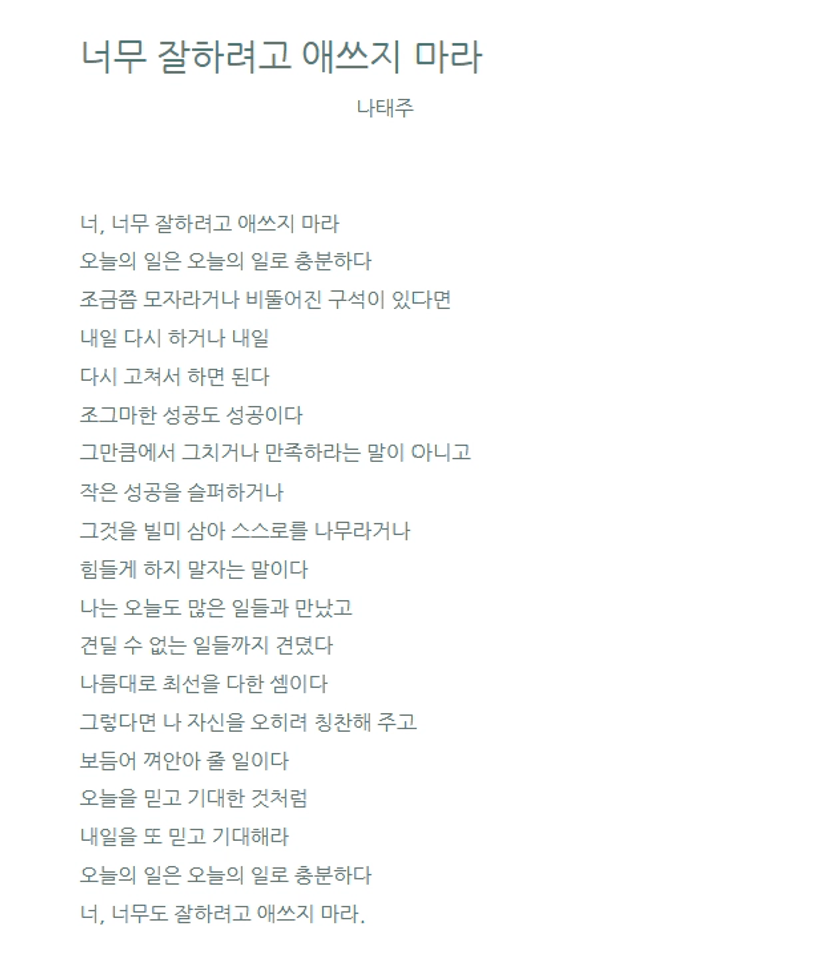 나태주 시인의 시를 통해서 마무리 지어보겠습니다