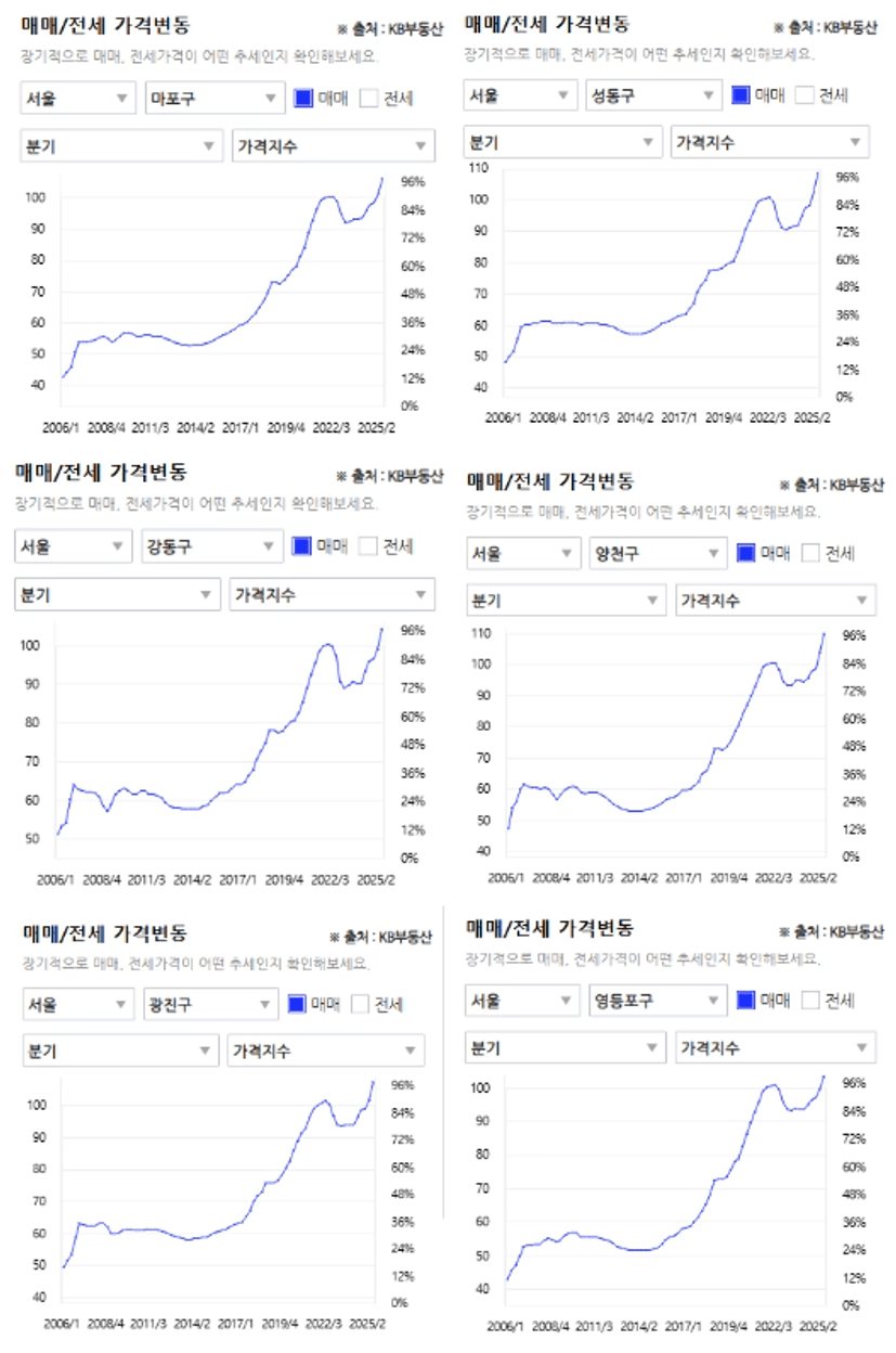 이렇게 구별로 데이터를 비교하면, 서울 안에서도 입지 순서대로 가격이 따라가는 것을 볼 수 있습니다. 입지에는 순서가 있고, 가격은 입지를 따르기 때문입니다. 현재 어느 지역까지 상승세에 접어들었는지는 자극적인 기사가 아니라 데이터가 말해줍니다.