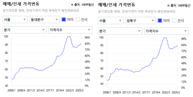 강서, 은평, 동대문, 성북구를 살펴봅니다.