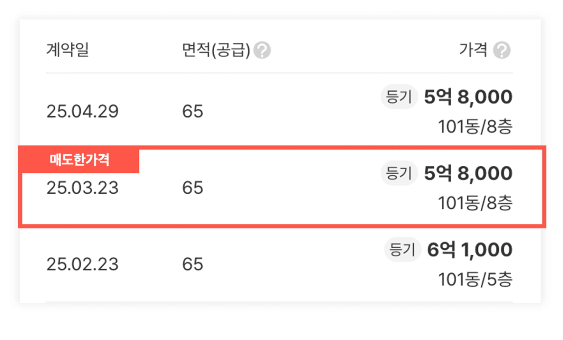 매도한 아파트의 최근 매도가격은 5.8억으로 제가 매도한 가격과 동일하구요
