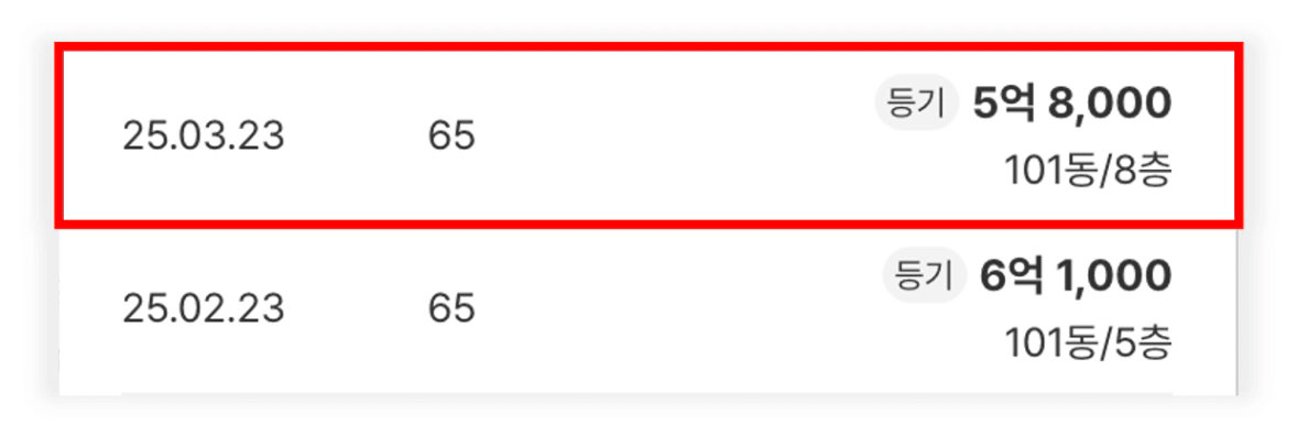 이 아파트는 직전 거래가 6억 1천만원인 1급지에 있는 아파트였습니다.