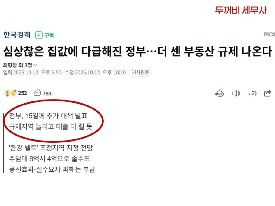 그래서 정부는 2025년 10월 15일, 추가 부동산 대책을 발표할 것이라 말했습니다. 규제지역을 늘리고 대출을 더 조일 것으로 예상되는데요.