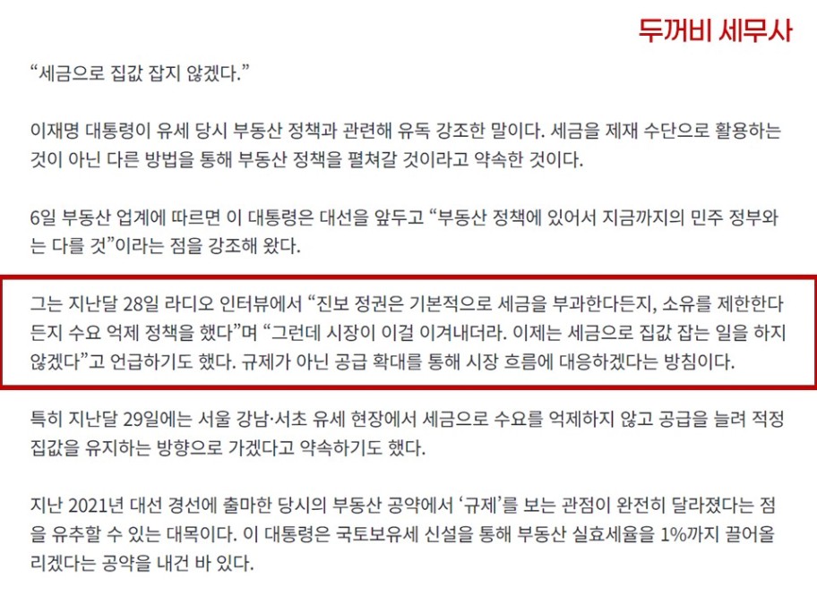 지난 라디오에서, 이재명 대통령은 세금을 부과한다던가 소유를 제안하는 수요 억제 정책을 시행하면, 시장이 이걸 이겨내더라, 라고 답했습니다. 그래서 세금으로 집값 잡지 않겠다라고 덧붙였고요.
