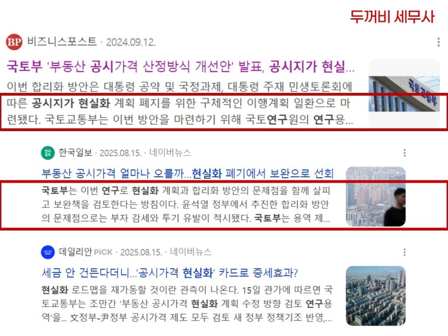 25년 8월, 부동산 공시가격 현실화를 폐기에서 보완으로 선회한다는 내용이죠.