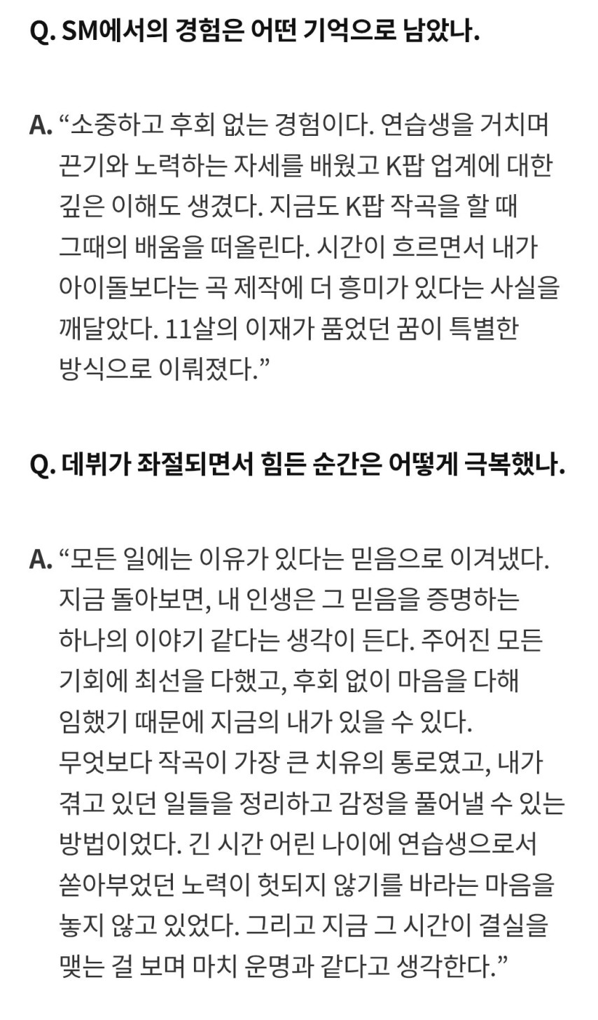 '이재'님의 인터뷰중 발췌한 내용입니다.