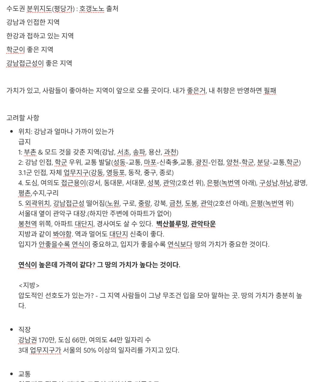 왜 강남 접근성이 중요한가, 역세권, 학군은 고려사항이 되는가? 등등