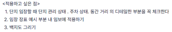 2.하고 있음. 가설 검증이 어렵고 이해를 못해서 못 했음 =>이번 임장지 부터 가설검증 해보자
