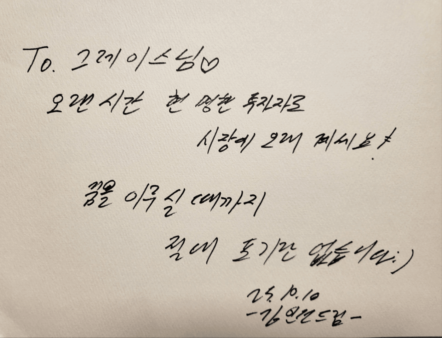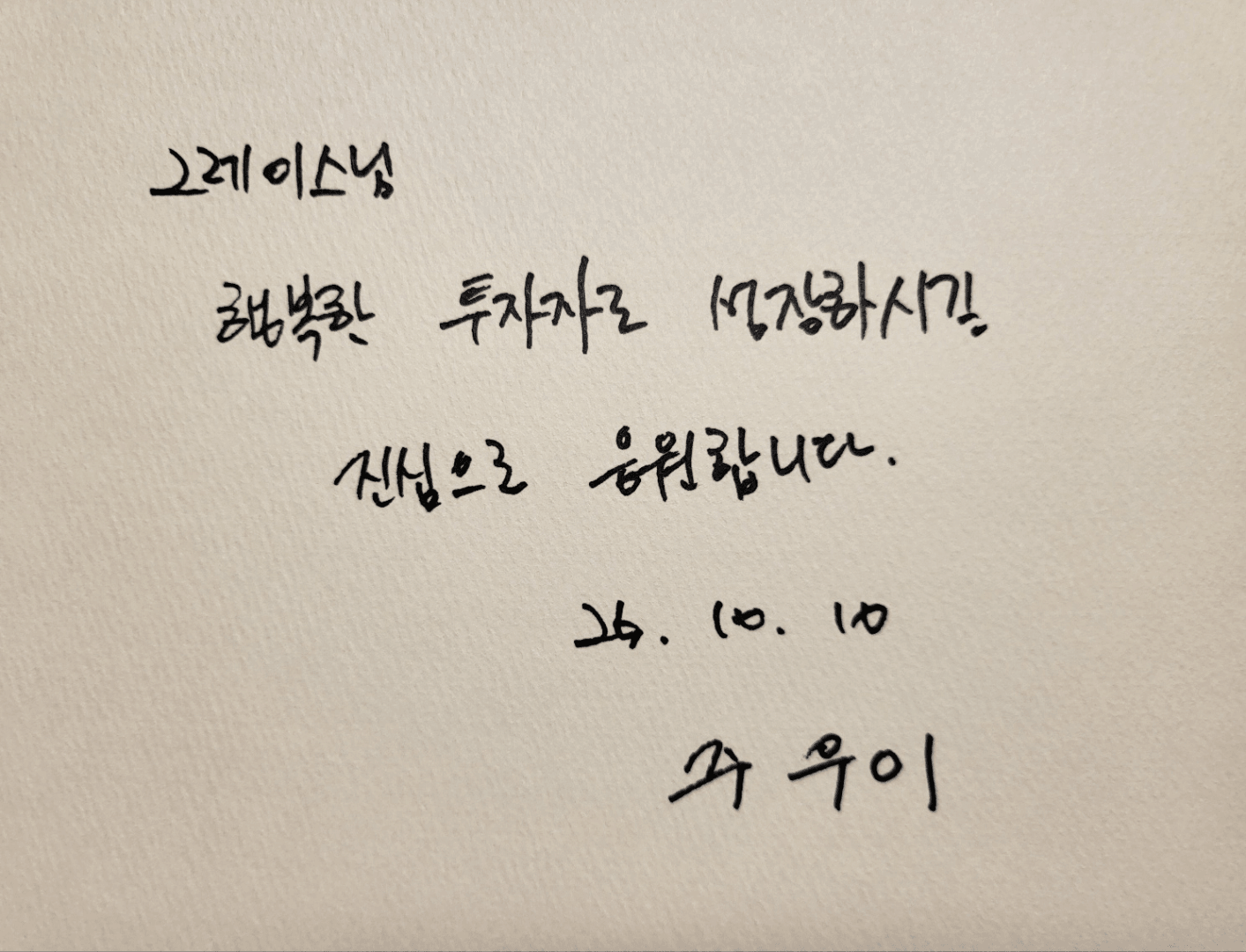 앞으로도 조급해하지 않고, 한 걸음씩 단단히 나아가는 투자자가 되겠습니다.