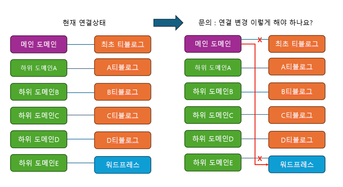 기존 메인 도메인을 티스토리에서 해체하고 워드프레스로 다시 연결하여 사용하 는게 맞는 건가요?