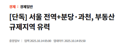 게다가 내일 정부는 10/15 추가 부동산 정책 대출규제를 발표하겠다고 하는데요.