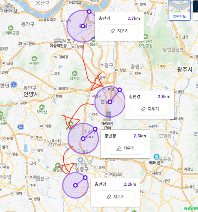예를 들어서 남쪽으로의 시세 흐름을 보면, 강남 > 분당 > 수지 > 수원(영통) 등의 흐름으로 강남으로 시작한 분위기가 점차 내려가는 것을 알 수 있습니다. 이것을 통해서 분당이 너무 비싸졌다면 수지를, 수지가 비싸졌다면 수원을 차례로 봐도 돈을 벌었습니다. 내가 가진 돈으로 더 나은 땅에서 하기가 어렵다면 미리 다음 급지를 가서 기다리는 것도 방법이라는 뜻입니다.
