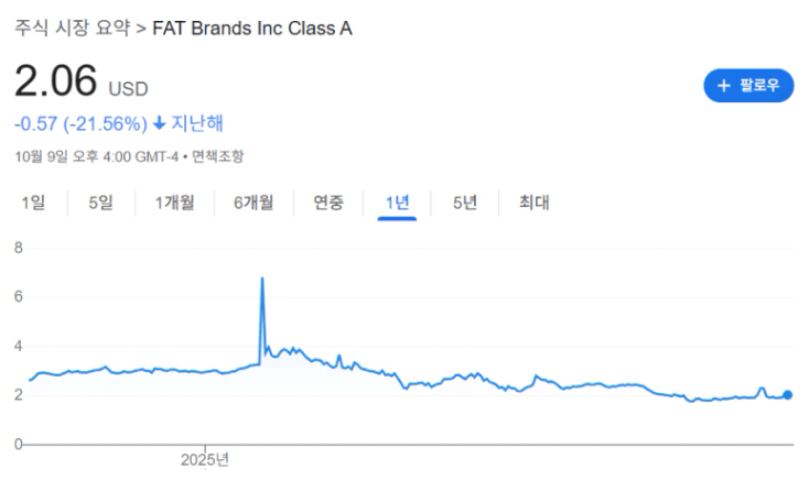 FAT Brands, Inc.(FAT)라는 기업의 주가는