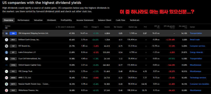 미국 고배당주 순위 1위에 랭크된