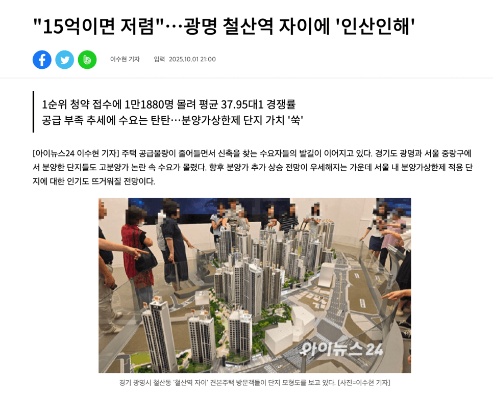 준서울 입지의 광명&철산 뉴타운