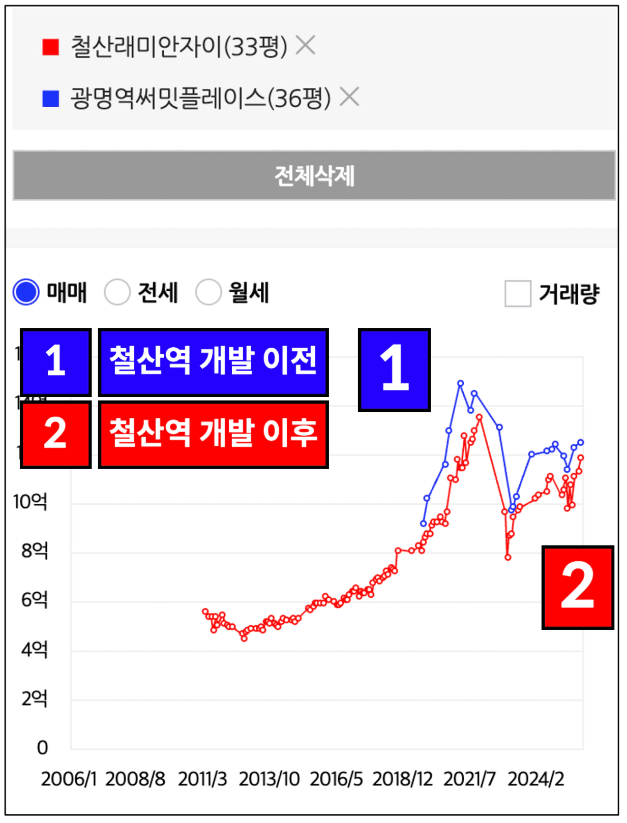 철산역 역세권이라는 장점은 분명하지만