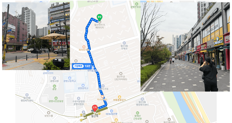 또한 철산역까지 도보로 가는 길에